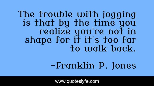 This page presents the quote "The trouble with jogging is that by the time you realize you're not in shape for it it's too far to walk back.". Author of this quote is Franklin P. Jones. .