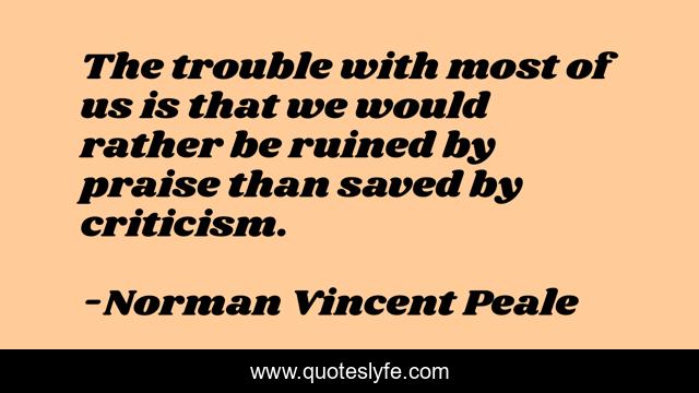 This page presents the quote "The trouble with most of us is that we would rather be ruined by praise than saved by criticism.". Author of this quote is Norman Vincent Peale. This quote is about yous, thank, closures,.