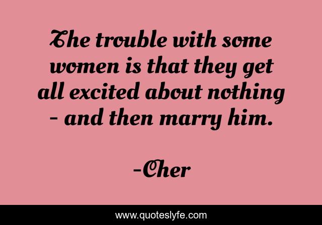 This page presents the quote "The trouble with some women is that they get all excited about nothing - and then marry him.". Author of this quote is Cher. This quote is about marriage, women,.