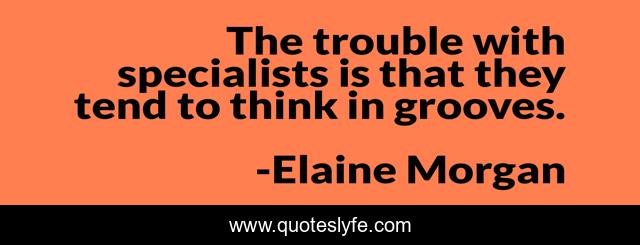 This page presents the quote "The trouble with specialists is that they tend to think in grooves.". Author of this quote is Elaine Morgan. This quote is about ability, achievement,.