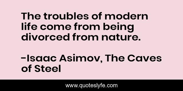 "Isaac Asimov, The Caves of Steel Quotes." Quoteslyfe.com, 2025. Mon. 08 Dec. 2025. <https://www.quoteslyfe.com/quote/The-troubles-of-modern-life-come-from-72808>.