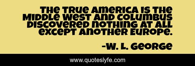 This page presents the quote "The true America is the Middle West and Columbus discovered nothing at all except another Europe.". Author of this quote is W. L. George. This quote is about america, americans,.