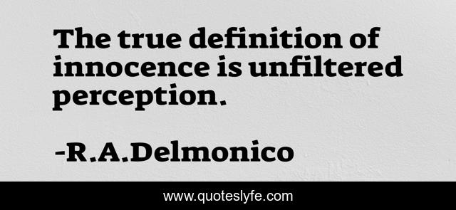This page presents the quote "The true definition of innocence is unfiltered perception.". Author of this quote is R.A.Delmonico. .