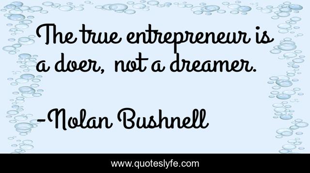 This page presents the quote "The true entrepreneur is a doer, not a dreamer.". Author of this quote is Nolan Bushnell. This quote is about entrepreneur, dreamer, entrepreneurship,.