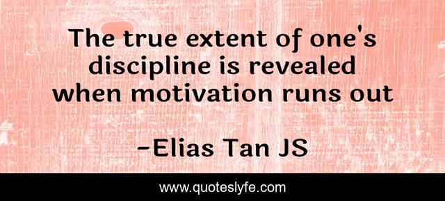 This page presents the quote "The true extent of one's discipline is revealed when motivation runs out". Author of this quote is Elias Tan JS. .