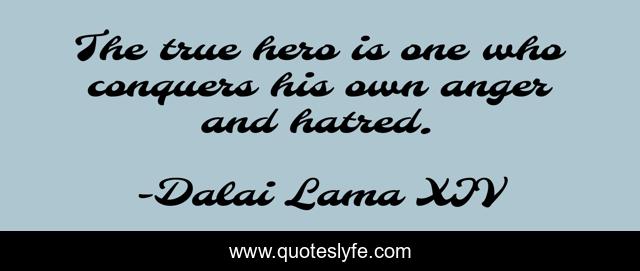 This page presents the quote "The true hero is one who conquers his own anger and hatred.". Author of this quote is Dalai Lama XIV. This quote is about hero, dalai-lama,.