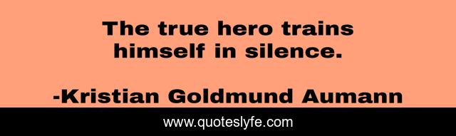 This page presents the quote "The true hero trains himself in silence.". Author of this quote is Kristian Goldmund Aumann. This quote is about true-heroe, silence,.