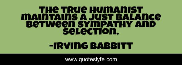 This page presents the quote "The true humanist maintains a just balance between sympathy and selection.". Author of this quote is Irving Babbitt. This quote is about balance, true, between,.