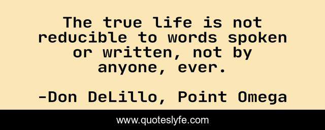 "Don DeLillo, Point Omega Quotes." Quoteslyfe.com, 2025. Mon. 08 Dec. 2025. <https://www.quoteslyfe.com/quote/The-true-life-is-not-reducible-to-27667>.
