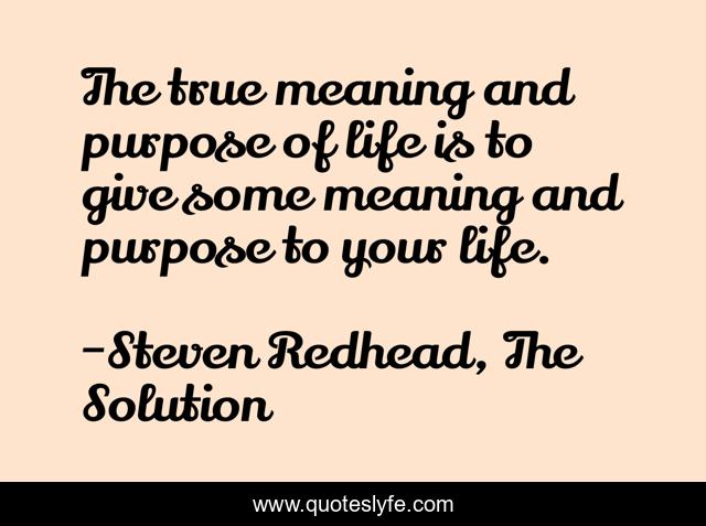 "Steven Redhead, The Solution Quotes." Quoteslyfe.com, 2025. Sun. 07 Dec. 2025. <https://www.quoteslyfe.com/quote/The-true-meaning-and-purpose-of-life-142498>.