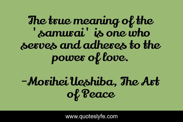 This page presents the quote "The true meaning of the 'samurai' is one who serves and adheres to the power of love.". Author of this quote is Morihei Ueshiba, The Art of Peace. This quote is about samurai, peace, love, power, affection,.