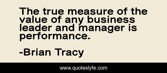 This page presents the quote "The true measure of the value of any business leader and manager is performance.". Author of this quote is Brian Tracy. This quote is about performance, leader, value,.