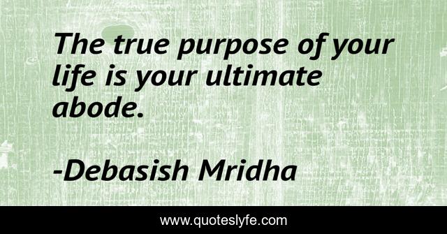 This page presents the quote "The true purpose of your life is your ultimate abode.". Author of this quote is Debasish Mridha. This quote is about abode, philosophy, debasish-mridha, quotes, purpose-of-your-life, inspirational, enthusiasm, debasish-mridha-m-d,.