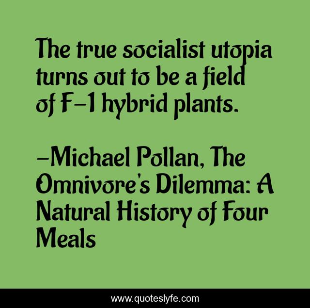This page presents the quote "The true socialist utopia turns out to be a field of F-1 hybrid plants.". Author of this quote is Michael Pollan, The Omnivore's Dilemma: A Natural History of Four Meals. .