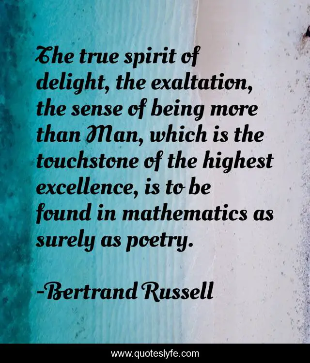 This page presents the quote "The true spirit of delight, the exaltation, the sense of being more than Man, which is the touchstone of the highest excellence, is to be found in mathematics as surely as poetry.". Author of this quote is Bertrand Russell. This quote is about mathematics, excellence, man,.