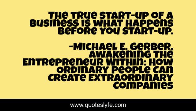 "Michael E. Gerber, Awakening the Entrepreneur Within: How Ordinary People Can Create Extraordinary Companies Quotes." Quoteslyfe.com, 2025. Fri. 05 Dec. 2025. <https://www.quoteslyfe.com/quote/The-true-start-up-of-a-business-129103>.