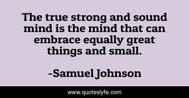 This page presents the quote "The true strong and sound mind is the mind that can embrace equally great things and small.". Author of this quote is Samuel Johnson. .