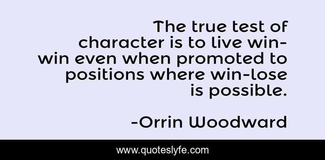 This page presents the quote "The true test of character is to live win-win even when promoted to positions where win-lose is possible.". Author of this quote is Orrin Woodward. This quote is about win-win, character, integrity, win-lose,.