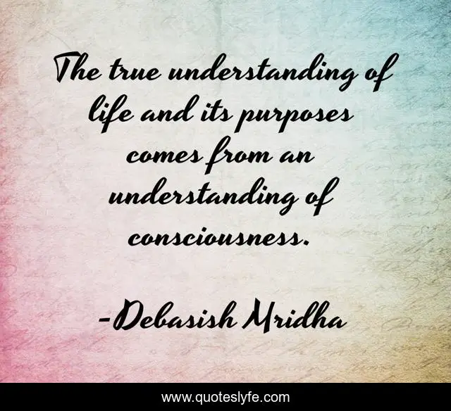 This page presents the quote "The true understanding of life and its purposes comes from an understanding of consciousness.". Author of this quote is Debasish Mridha. This quote is about life-s-purpose, consciousness, philosophy, debasish-mridha, quotes, inspirational, enthusiasm, true-understanding, debasish-mridha-m-d,.