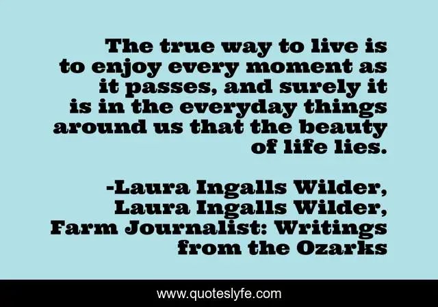 "Laura Ingalls Wilder, Laura Ingalls Wilder, Farm Journalist: Writings from the Ozarks Quotes." Quoteslyfe.com, 2025. Fri. 05 Dec. 2025. <https://www.quoteslyfe.com/quote/The-true-way-to-live-is-to-60628>.