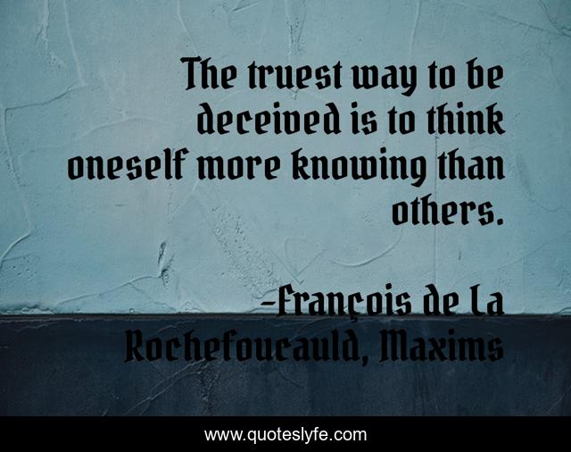 "François de La Rochefoucauld, Maxims Quotes." Quoteslyfe.com, 2025. Sat. 06 Dec. 2025. <https://www.quoteslyfe.com/quote/The-truest-way-to-be-deceived-is-247512>.