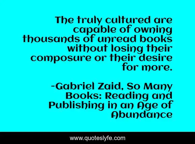 "Gabriel Zaid, So Many Books: Reading and Publishing in an Age of Abundance Quotes." Quoteslyfe.com, 2025. Sat. 06 Dec. 2025. <https://www.quoteslyfe.com/quote/The-truly-cultured-are-capable-of-owning-43006>.