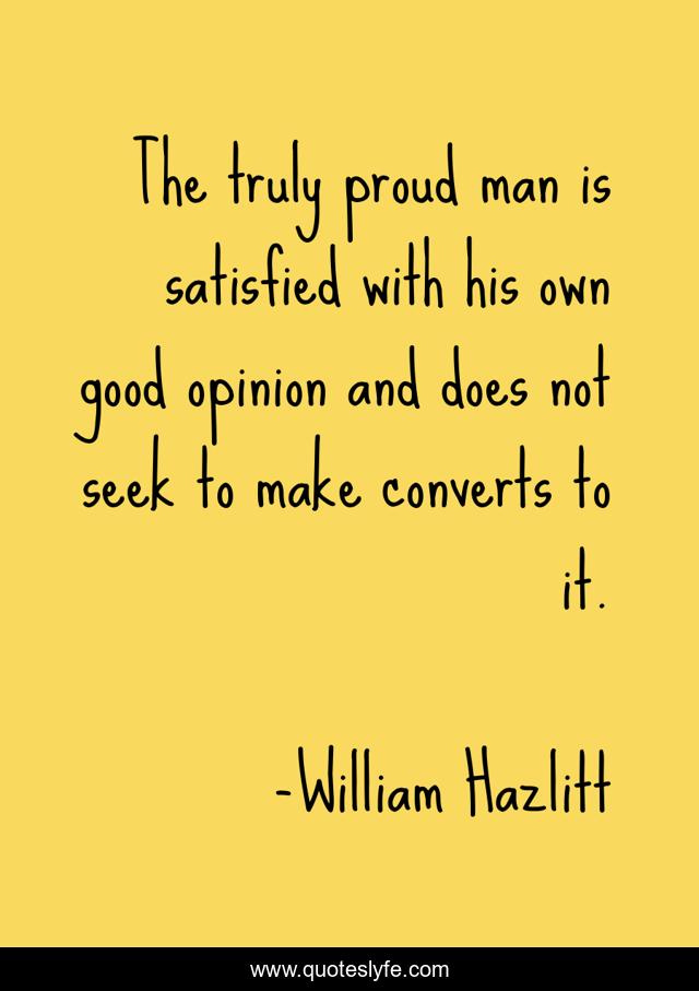 This page presents the quote "The truly proud man is satisfied with his own good opinion and does not seek to make converts to it.". Author of this quote is William Hazlitt. .