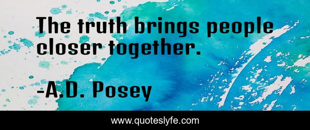 "A.D. Posey Quotes." Quoteslyfe.com, 2025. Sat. 06 Dec. 2025. <https://www.quoteslyfe.com/quote/The-truth-brings-people-closer-together-150995>.