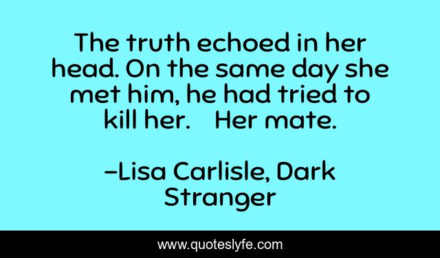 This page presents the quote "The truth echoed in her head. On the same day she met him, he had tried to kill her. Her mate.". Author of this quote is Lisa Carlisle, Dark Stranger. This quote is about gargoyle, art, paranormal-romance, wolf-shifter-romance, vampire,.