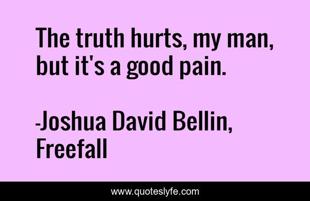 This page presents the quote "The truth hurts, my man, but it's a good pain.". Author of this quote is Joshua David Bellin, Freefall. This quote is about good, hard, truth,.