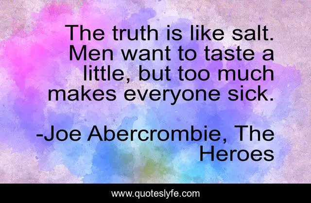 "Joe Abercrombie, The Heroes Quotes." Quoteslyfe.com, 2025. Sat. 06 Dec. 2025. <https://www.quoteslyfe.com/quote/The-truth-is-like-salt-Men-want-9088>.