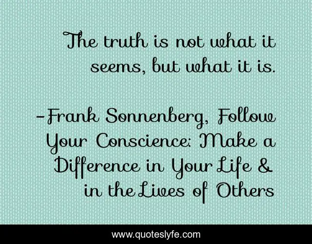 "Frank Sonnenberg, Follow Your Conscience: Make a Difference in Your Life & in the Lives of Others Quotes." Quoteslyfe.com, 2025. Fri. 05 Dec. 2025. <https://www.quoteslyfe.com/quote/The-truth-is-not-what-it-seems-166030>.