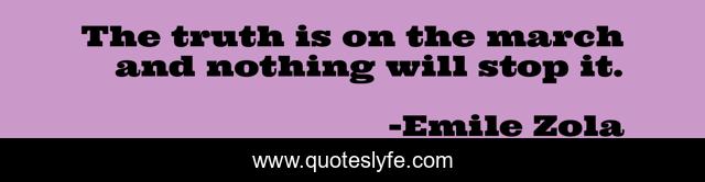 This page presents the quote "The truth is on the march and nothing will stop it.". Author of this quote is Emile Zola. This quote is about stop, truth is, truth,.