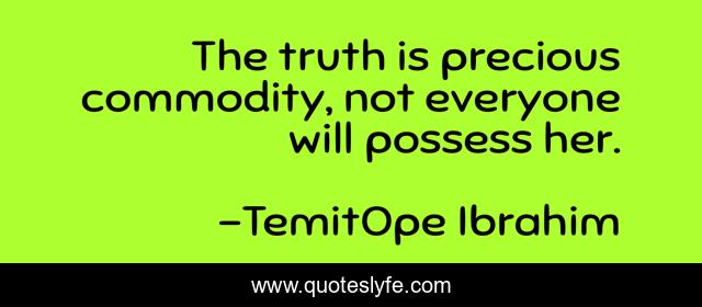 "TemitOpe Ibrahim Quotes." Quoteslyfe.com, 2025. Sun. 07 Dec. 2025. <https://www.quoteslyfe.com/quote/The-truth-is-precious-commodity-not-everyone-31750>.
