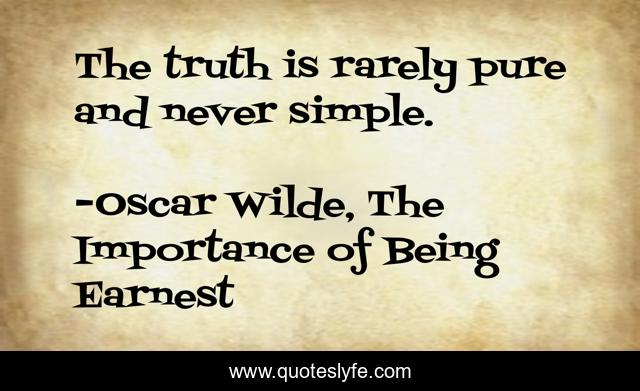 This page presents the quote "The truth is rarely pure and never simple.". Author of this quote is Oscar Wilde, The Importance of Being Earnest. .