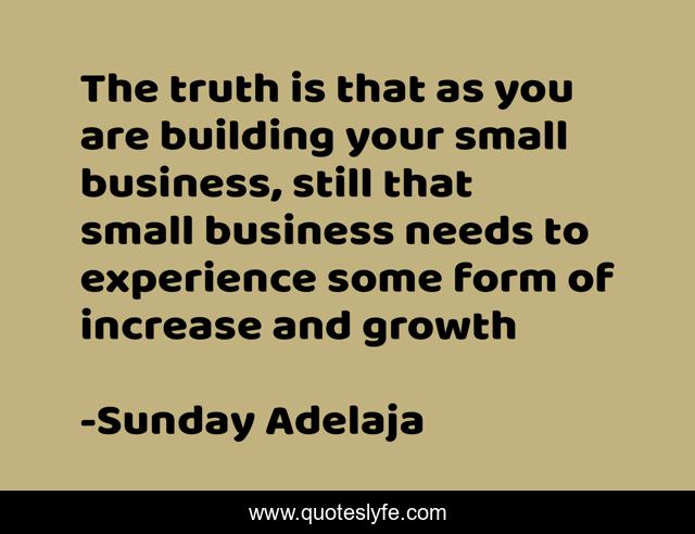 This page presents the quote "The truth is that as you are building your small business, still that small business needs to experience some form of increase and growth". Author of this quote is Sunday Adelaja. This quote is about building, needs, business, experience-and-growth, truth, small,.