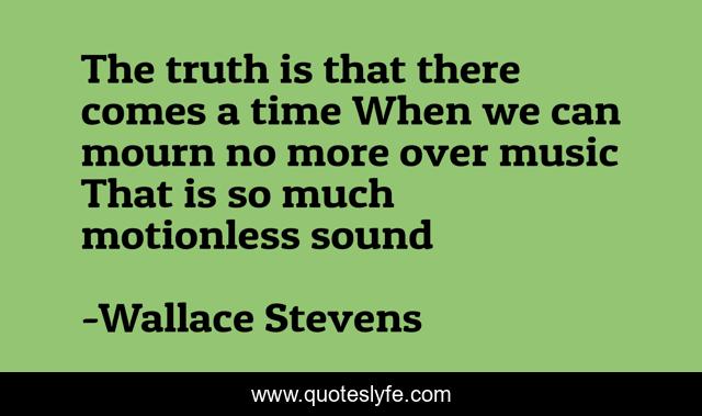 This page presents the quote "The truth is that there comes a time When we can mourn no more over music That is so much motionless sound". Author of this quote is Wallace Stevens. This quote is about music, time,.