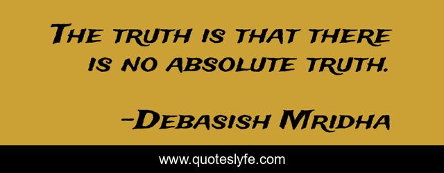 This page presents the quote "The truth is that there is no absolute truth.". Author of this quote is Debasish Mridha. This quote is about miraboli, absolute-truth, oscar-wilde, philosophy, debasish-mridha, quotes, debasish-mridha-md, inspirational, enthusiasm,.