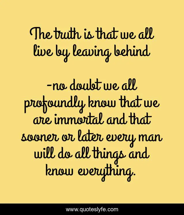 "no doubt we all profoundly know that we are immortal and that sooner or later every man will do all things and know everything. Quotes." Quoteslyfe.com, 2025. Sat. 06 Dec. 2025. <https://www.quoteslyfe.com/quote/The-truth-is-that-we-all-live-100494>.