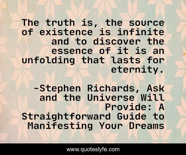 "Stephen Richards, Ask and the Universe Will Provide: A Straightforward Guide to Manifesting Your Dreams Quotes." Quoteslyfe.com, 2025. Fri. 05 Dec. 2025. <https://www.quoteslyfe.com/quote/The-truth-is-the-source-of-existence-44766>.