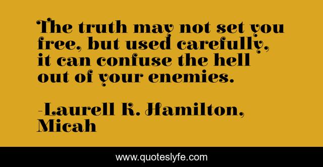 This page presents the quote "The truth may not set you free, but used carefully, it can confuse the hell out of your enemies.". Author of this quote is Laurell K. Hamilton, Micah. This quote is about honesty, truth, enemies,.