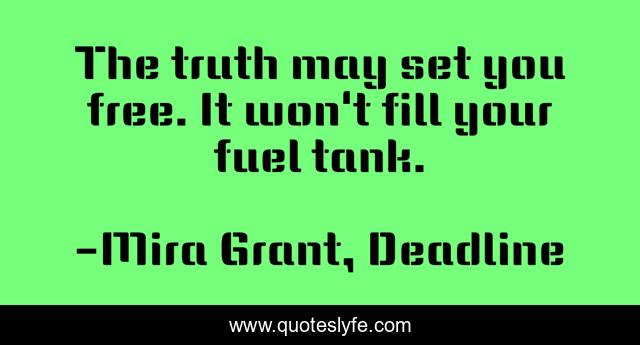 This page presents the quote "The truth may set you free. It won't fill your fuel tank.". Author of this quote is Mira Grant, Deadline. .