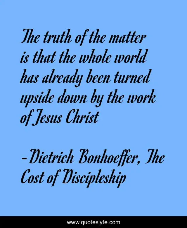 "Dietrich Bonhoeffer, The Cost of Discipleship Quotes." Quoteslyfe.com, 2025. Fri. 05 Dec. 2025. <https://www.quoteslyfe.com/quote/The-truth-of-the-matter-is-that-134758>.