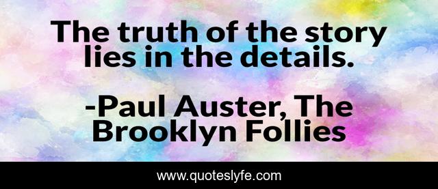 This page presents the quote "The truth of the story lies in the details.". Author of this quote is Paul Auster, The Brooklyn Follies. This quote is about tension, story, details, truth,.