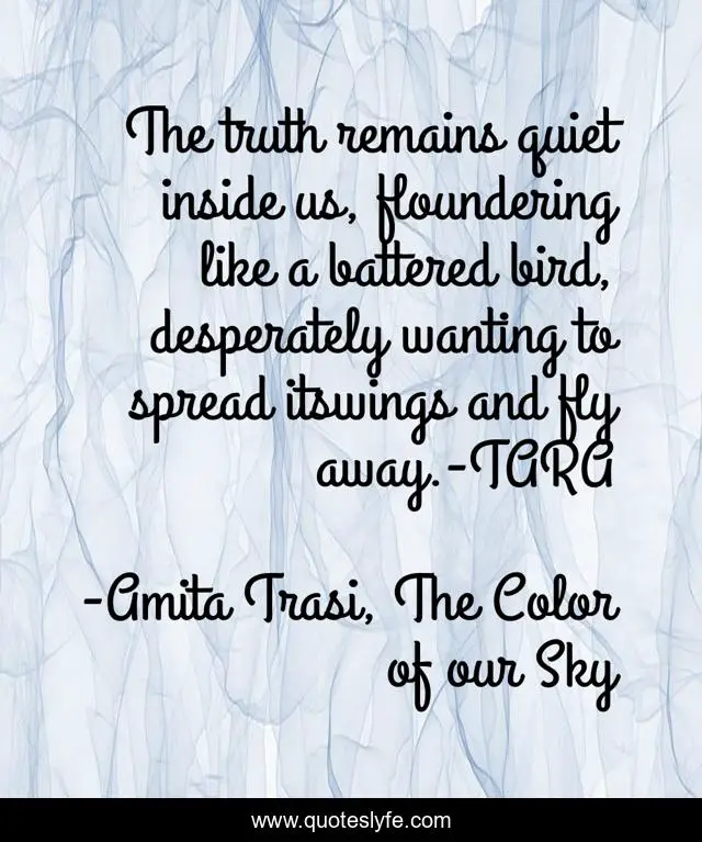 "Amita Trasi, The Color of our Sky Quotes." Quoteslyfe.com, 2025. Sat. 06 Dec. 2025. <https://www.quoteslyfe.com/quote/The-truth-remains-quiet-inside-us-floundering-217549>.