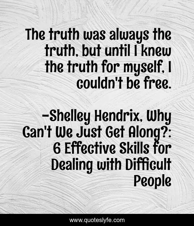 "Shelley Hendrix, Why Can't We Just Get Along?: 6 Effective Skills for Dealing with Difficult People Quotes." Quoteslyfe.com, 2025. Fri. 05 Dec. 2025. <https://www.quoteslyfe.com/quote/The-truth-was-always-the-truth-but-134813>.