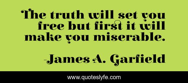This page presents the quote "The truth will set you free but first it will make you miserable.". Author of this quote is James A. Garfield. .