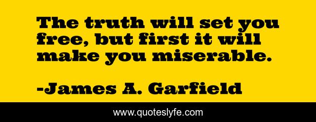 This page presents the quote "The truth will set you free, but first it will make you miserable.". Author of this quote is James A. Garfield. This quote is about free, first,.