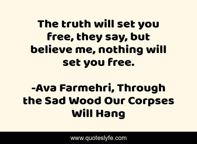 "Ava Farmehri, Through the Sad Wood Our Corpses Will Hang Quotes." Quoteslyfe.com, 2025. Sat. 06 Dec. 2025. <https://www.quoteslyfe.com/quote/The-truth-will-set-you-free-they-30356>.