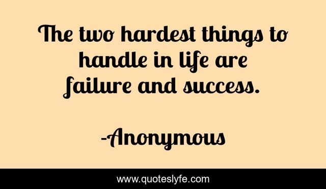 This page presents the quote "The two hardest things to handle in life are failure and success.". Author of this quote is Anonymous. .